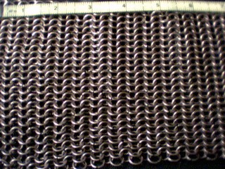 I've come to the realization that I'm going to use most, if not all of the wire I purchased from LC. I just hope I don't run out. The coils I'm pumping out at a not so alarming rate are 1/4" Inner Diamaeter. My plan for the Hauberk is for a European 4-1 weave. This is a decently loose weave, but still combat grade with the 16 AWG wire that I'm working with. |